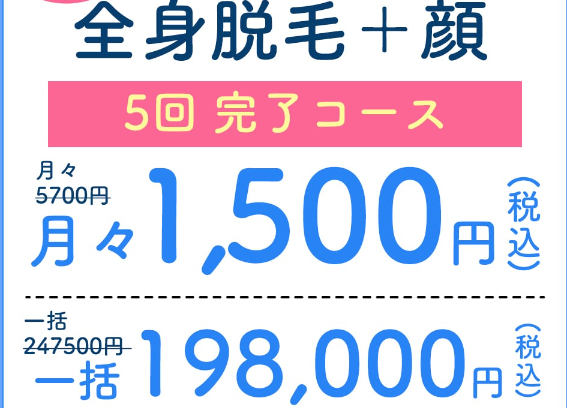 私は、今まで「全身+顔のプランにVIO+うなじ」が198000円できるクリニックを見たことがありません。