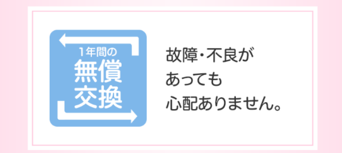 万が一故障が生じた場合でも、修理ではなく無償で交換してくれるから安心