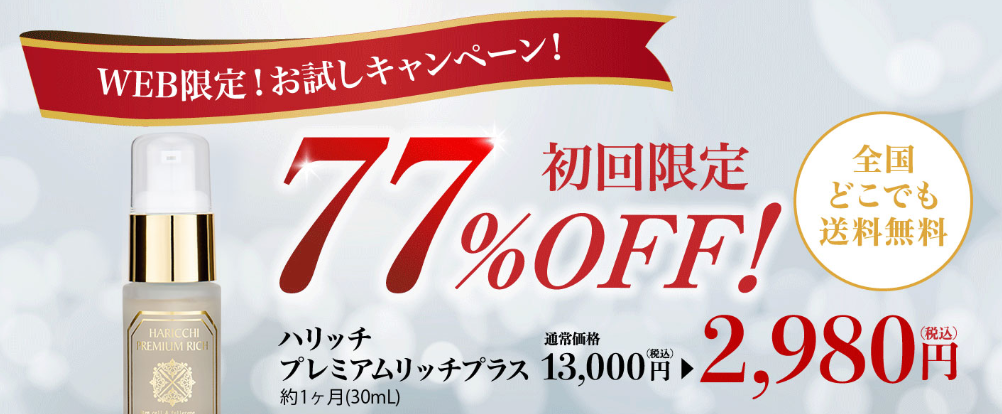 「ハリッチプレミアムリッチプラス」の公式サイトでは、キャンペーン中により77%OFF!