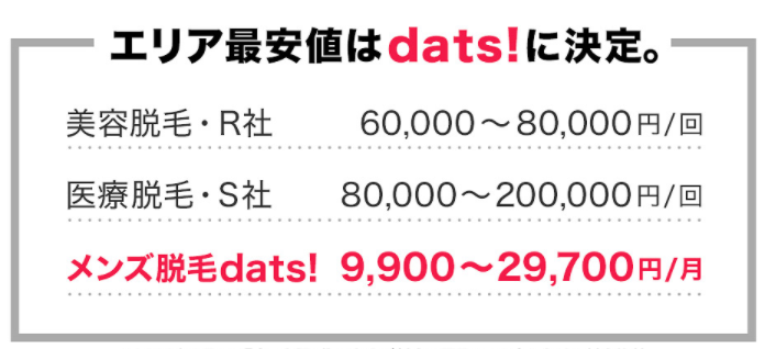 メンズ脱毛dats!「ダッツ」は、業界No1!と言っていいほど脱毛料金が安い!