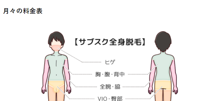 | サブスク(5部位=全身) | 29700円/月(約180分) |
