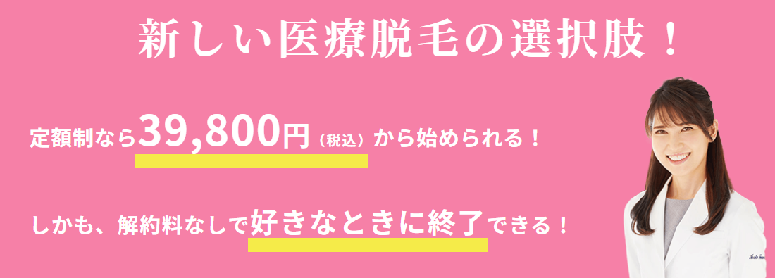 新しい医療脱毛の選択肢!定額制なら39800円(税込)から始められる。
