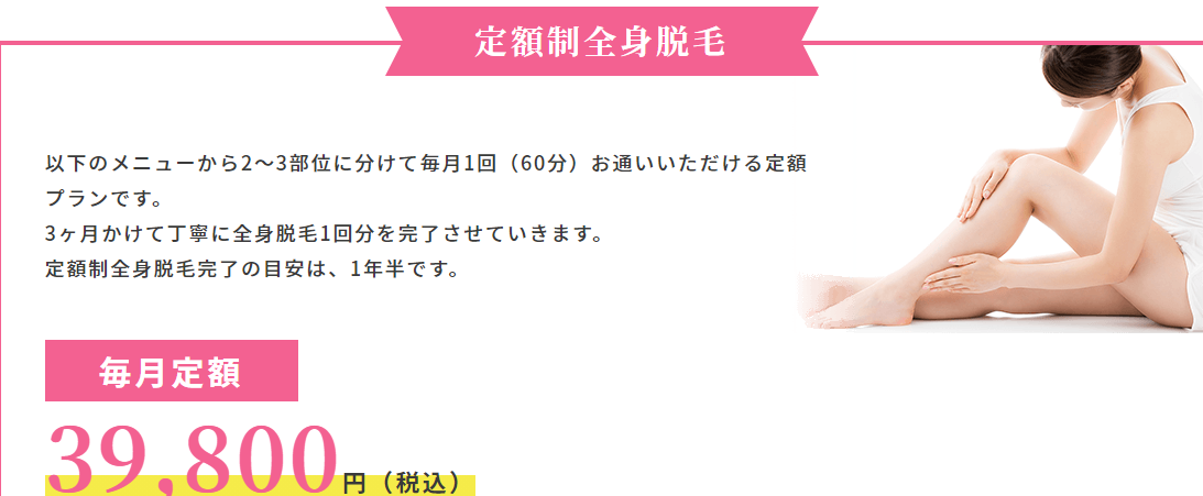 | 定額制全身脱毛 | 毎月定額39,800円(税込) |