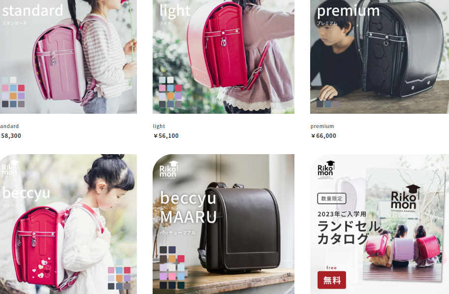 上部バナーから 「Rikomon/ランドセル」正規取扱店、公式サイトのページをご覧ください。