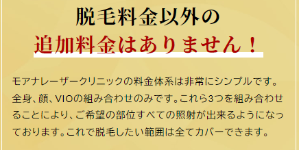 「モアナレーザークリニック」は、これらの追加料金が後から発生するこがありません。