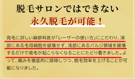 それに対して、エステ脱毛では効果が得られない「永久脱毛」を医療レーザー脱毛では可能となります。