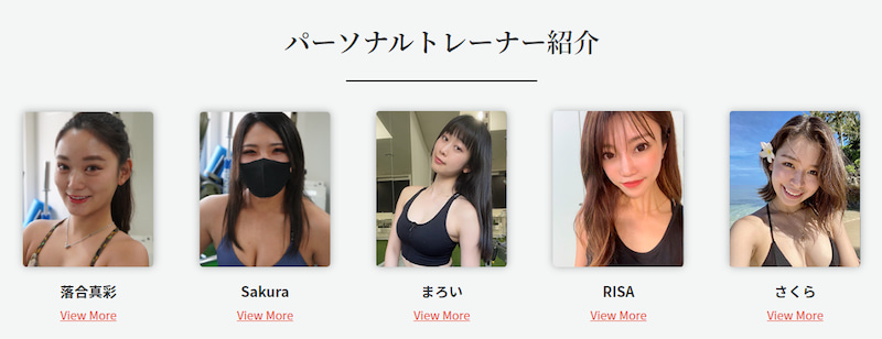 トレーナーはベストボディジャパン・ラウンドガール・現役モデルなど様々な経歴を持ったトレーナーが在籍。