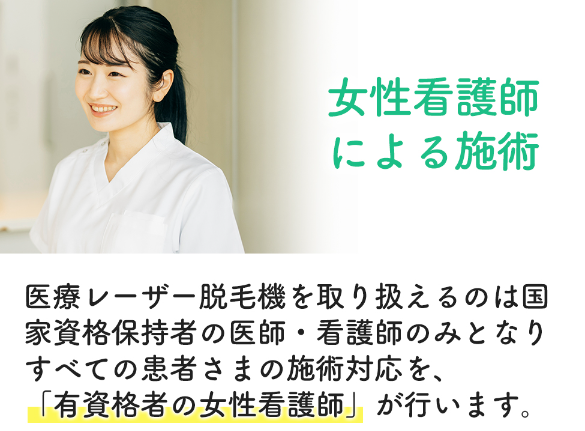 万が一の肌トラブル時の治療費も無料、専門医が適切な処置、医療脱毛専門看護師が施術。