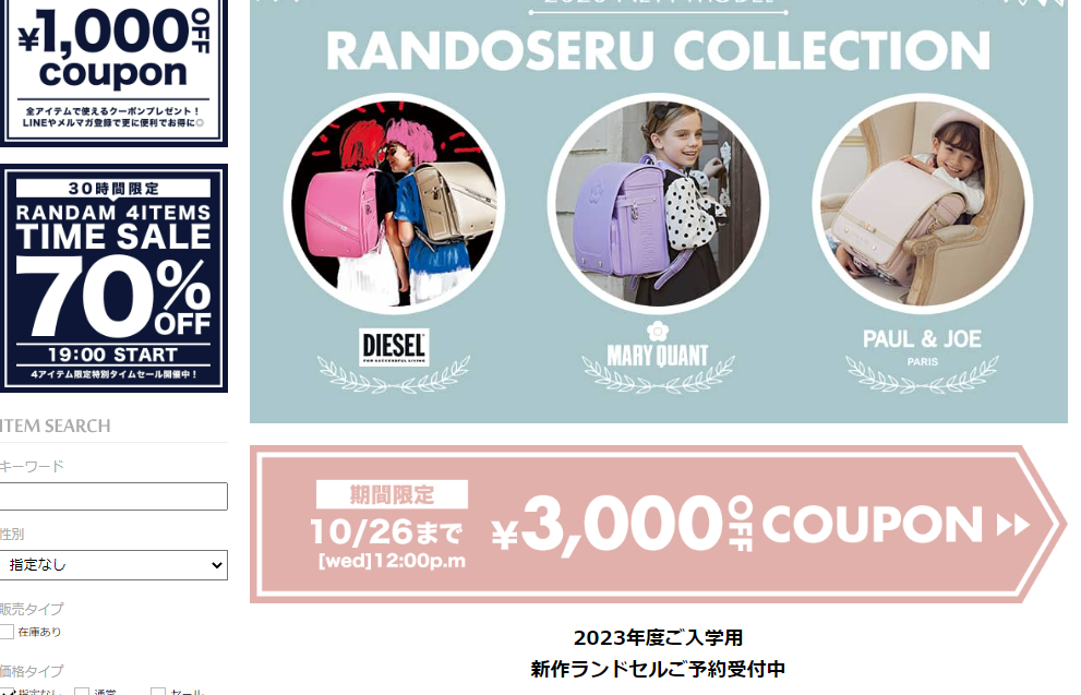 「SHIFFONランドセル」クーポンキャンペーンは上部の公式サイトをご覧ください。