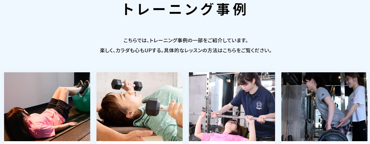 また、大手パーソナルジム出身のトレーナー陣が「楽しく続けられる」運動を一人一人にプランニングします。