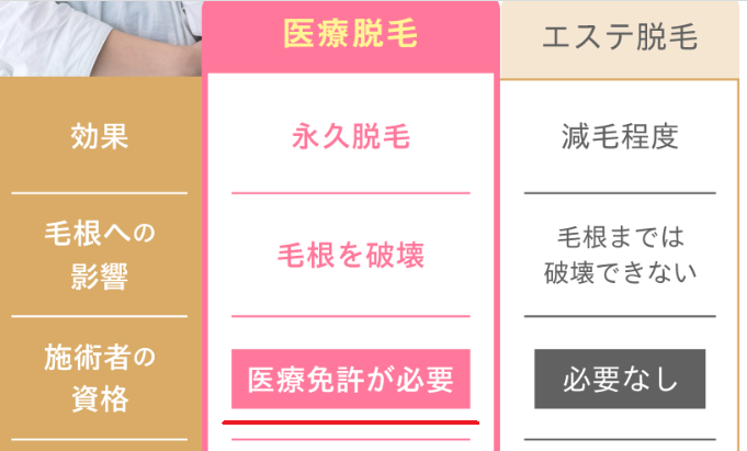 それに対して、エステ脱毛では効果が得られない「永久脱毛」を医療レーザー脱毛では可能となります。