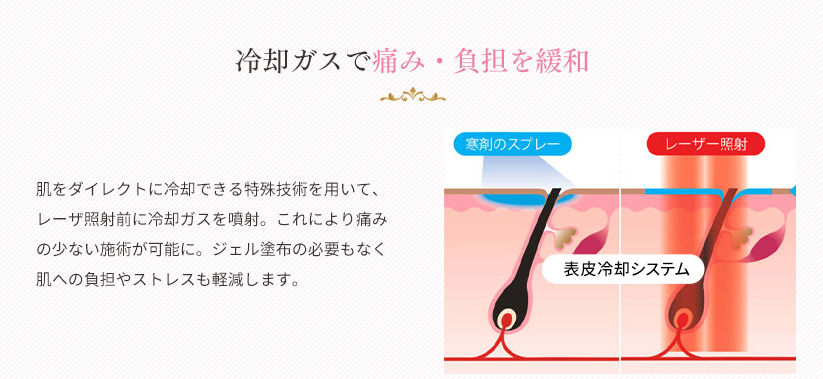 細胞を破壊すると多少の痛みがあるのですが、「メディカルエピレーション」の最先端の機械でほぼ無痛!
