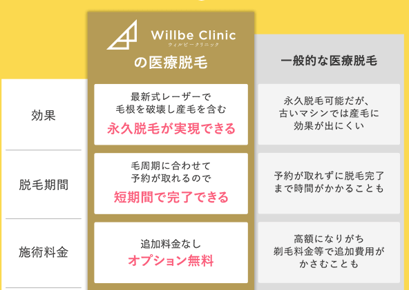 詳しく調べてみた結果、「ウィルビークリニック」は、脱毛機の性能が高く他のクリニックよりも最安値!
