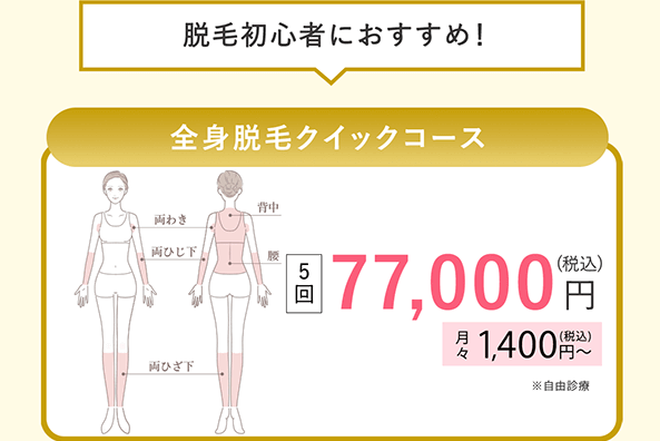 私は、今まで77000円(税込)で全身脱毛ができるクリニックを見たことがありません。