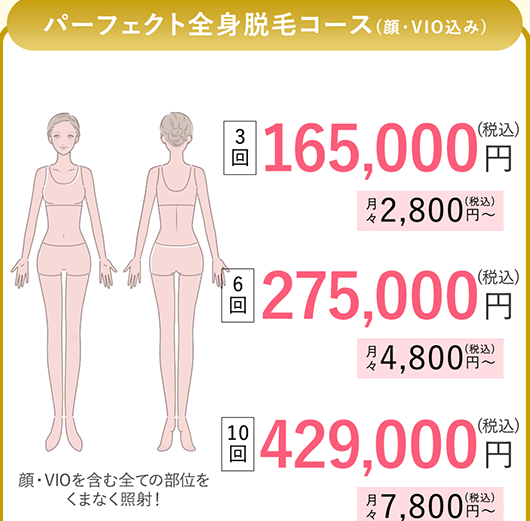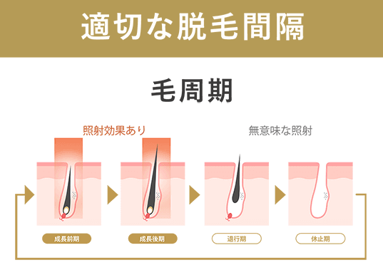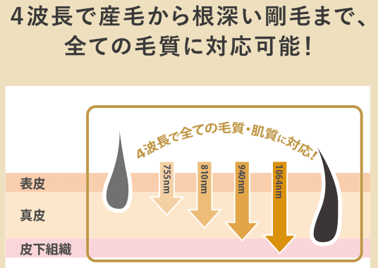 つまり、ワキやVIOなど毛が濃い部位でも少ない回数で、確実な脱毛をすることができるんですね。