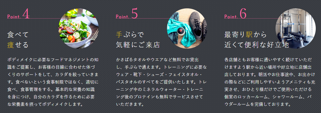 美しいカラダ作りを提案&食事管理では管理栄養士による指導してくれます。