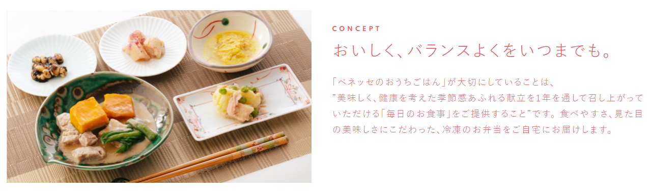 「ベネッセのおうちごはん」は、お弁当を冷凍の宅配便でお届けするサービスです。