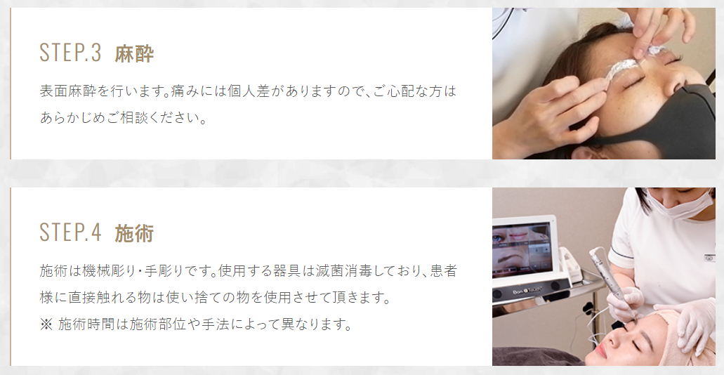 資格保持者のスタッフが、高度な技術で機械彫り・手彫りを行い高品質な施術を届けてくれます。