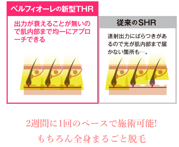 「ベルフィオーレ」では、新型のTHR脱毛方式を採用しています。