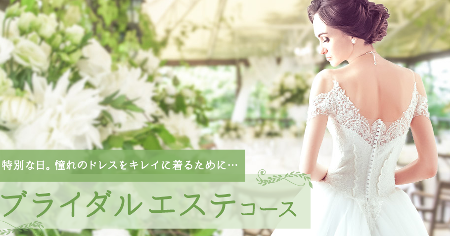 ブライダルエステでは、本格的なブライダルエステメニューで一生に一度の晴れの日を飾ります。