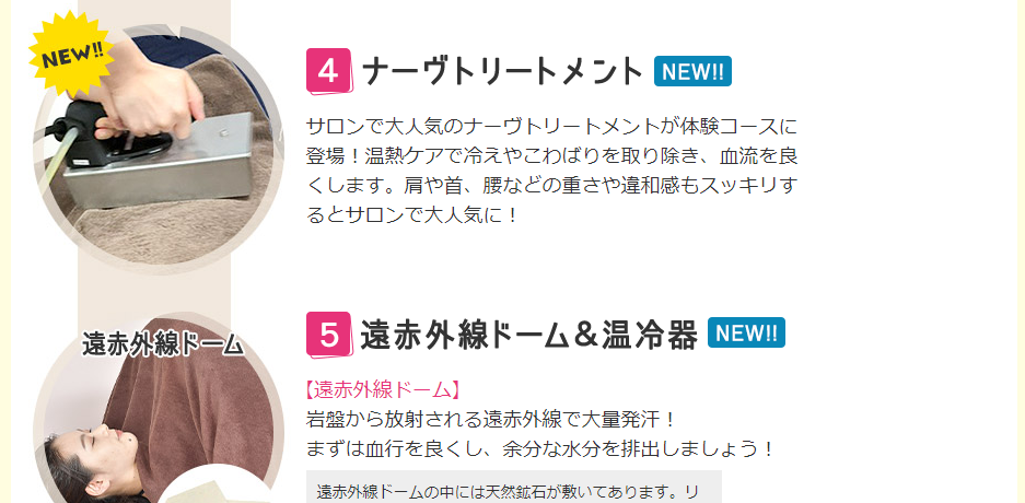 遠赤外線ドームやイオンパックなどの機器を使って、