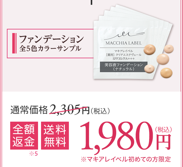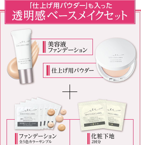 セット内容:美容液ファンデーション+仕上げ用パウダー+全5色サンプル+プレゼント