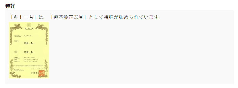 商品名:「キトー君」包茎矯正器具として特許が認められている。