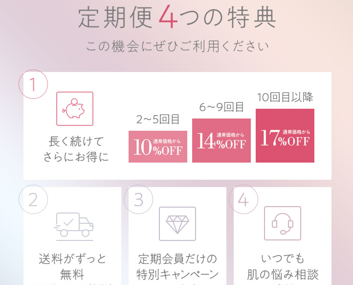 2〜10回目以降:10〜17%OFF!の割引き価格