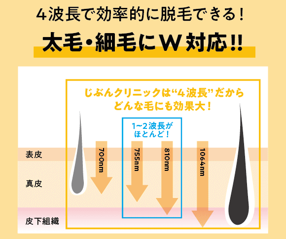 細胞を破壊すると多少の痛みがあるのですが、「じぶんクリニック」の最先端の機械でほぼ無痛で脱毛を実現!