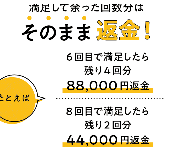 満足を実感して余った回数分を返金されるので、低価格で全身脱毛ができる!