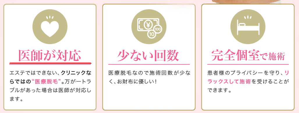 さらに看護師さんが、高度な技術で脱毛機を扱うので、高品質な医療脱毛を届けてくれます。