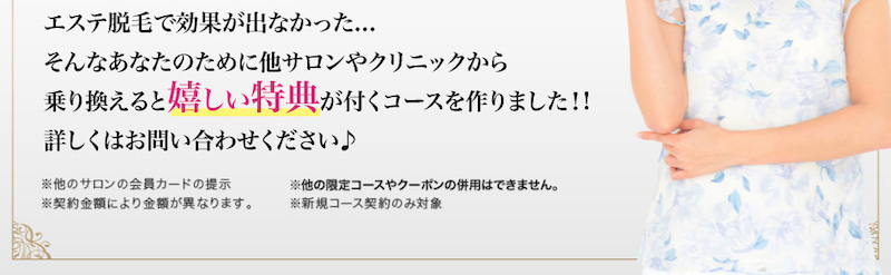 他のクリニックで脱毛を再スタートしてみたいという方に、お得なプランが用意されている。