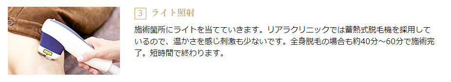 細胞を破壊すると多少の痛みがあるのですが、「リアラクリニック」の最先端の機械でほぼ無痛で脱毛を実現!