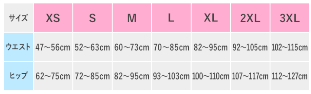 - XSサイズ/ウエスト47〜56cm、ヒップ62〜75cm
