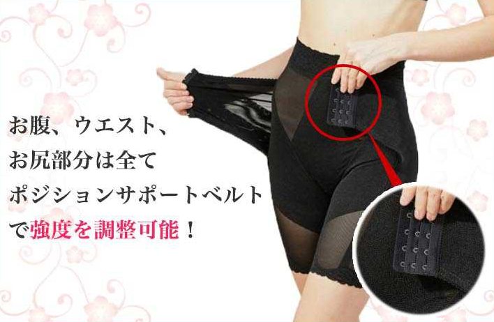 「マジカルシェリー」には、3段階ホックがついているので着圧レベルを調整することができます。