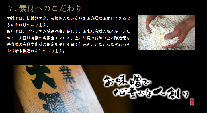 塩は沖縄の石垣の塩と醸造元も長野県の有形文化財の指定を受けた蔵で仕込まれています。