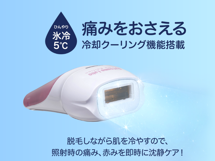 そして、照射時の痛みを即時に軽減する冷却クーリング機能により、ほぼ無痛で脱毛ができる!