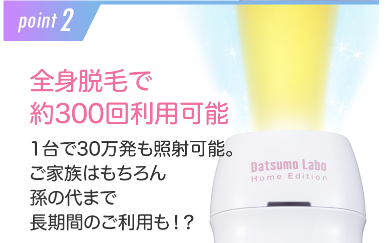 1台で30万発の照射が可能が可能なので、全身脱毛なら約300回はできます。