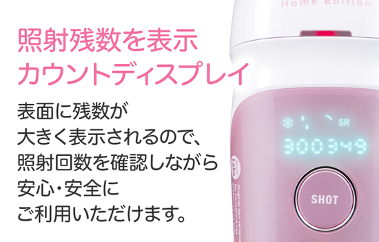 照射残数を表示できるカウントディスプレイにより、安全に脱毛することが可能。