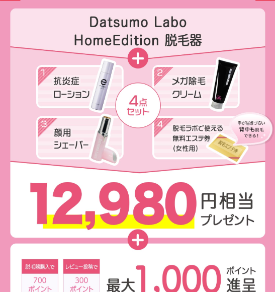さらに購入特典として、抗炎症成分配合ローション等がプレゼントされます。(12980円相当)