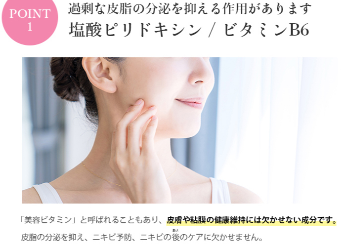「塩酸ピリドキシン」&「グリチルリチン酸ジカリウム」は、毛穴の奥&角質の皮脂や炎症を防いでくれます。