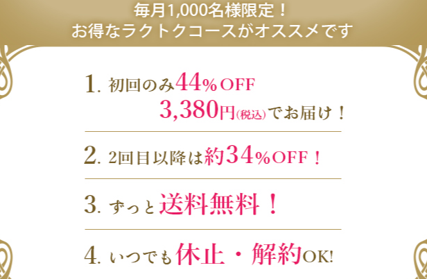 通常価格6050円のところ公式サイトの定期コースでは3380円(税込み)