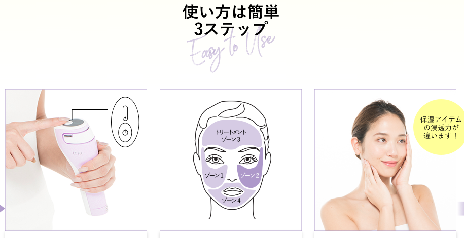 では、「トリア・スキン エイジングケアレーザー」の効果的な使い方を見てみましょう。