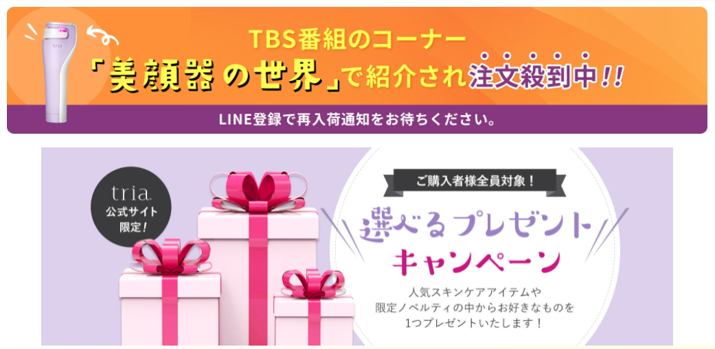 上部バナーから「トリアレーザー美顔器」公式サイトのキャンペーンページをご覧ください。