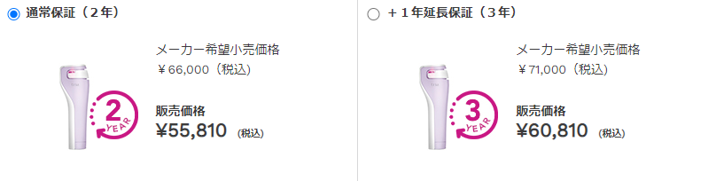 最安値の内容:通常価格60810円のところ5000円OFF!の55810円(税込)