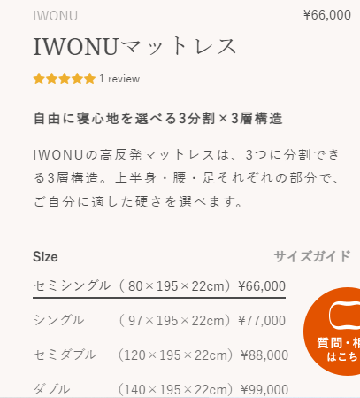 「iwonaマットレス」最安値の詳細は公式サイトをご確認ください。