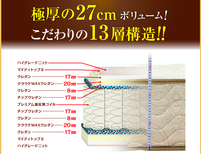 プレミアムポケットコイルの12構造で、腰痛や肩こりなどのからだの痛みにアプローチするマットレス。