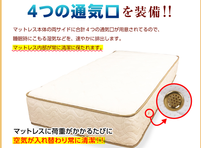 4つの通気口、湿気を逃しやすい特別な繊維を使用、睡眠中の発汗による温度上昇を防いでくれる。
