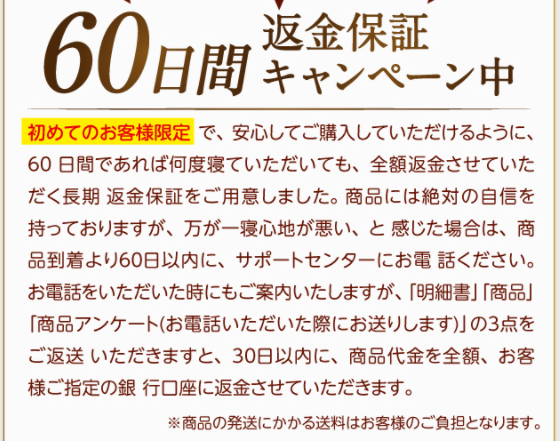 公式サイトは、最安値&60日間の返金保障はもちろんですが、不具合のない正規品が届くから安心です。