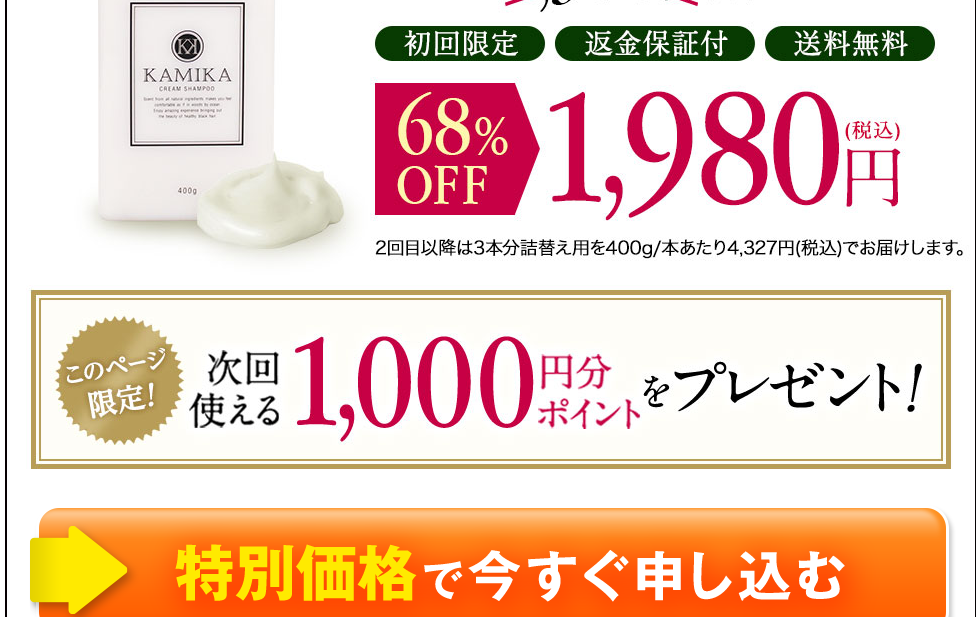 上部バナーから「カミカシャンプー」公式サイトのキャンペーンページをご覧ください。